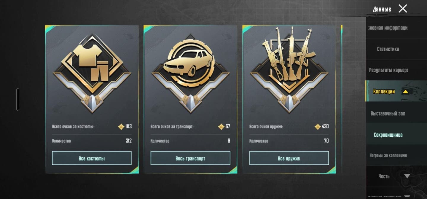 👚Топ костюмы: 31; ⭐️Royale Pass: с 6 сезонна; 🌈Скины на оружие: 36;
