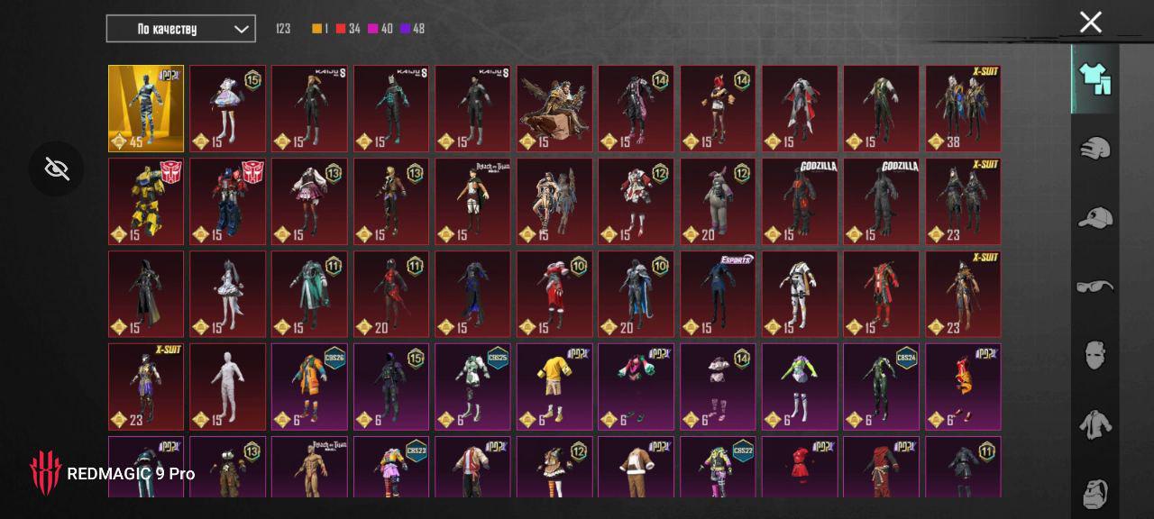 👚Топ костюмы: 40;⭐️Royale Pass: с 4 сезонна;🌈Скины на оружие: 123;