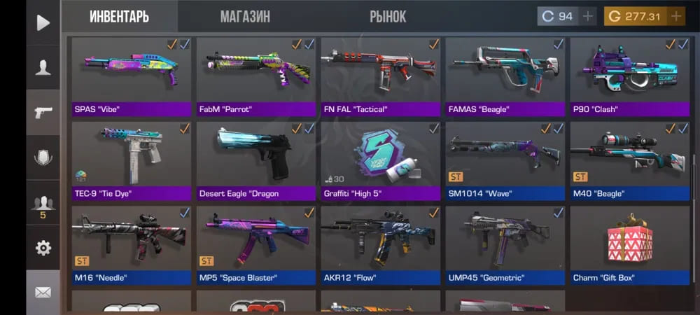 💰Голда: 277,31; 🔪Ножи: 1; ⭐️Редкие скины: 5