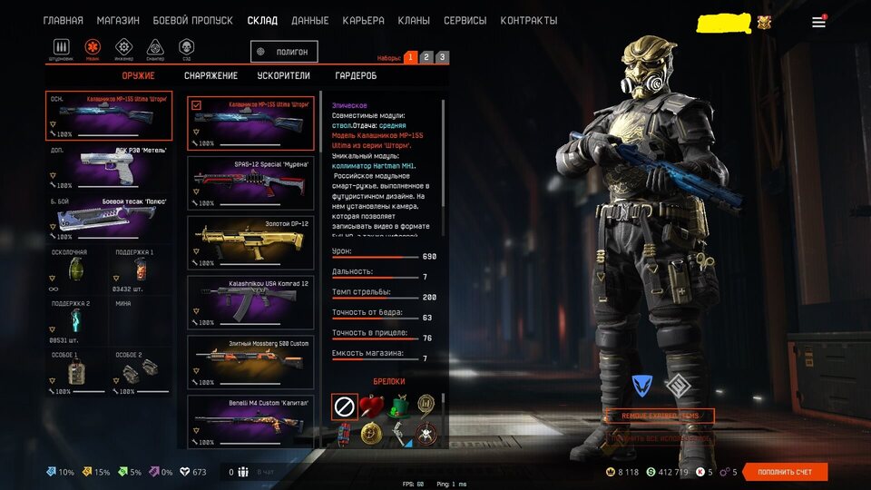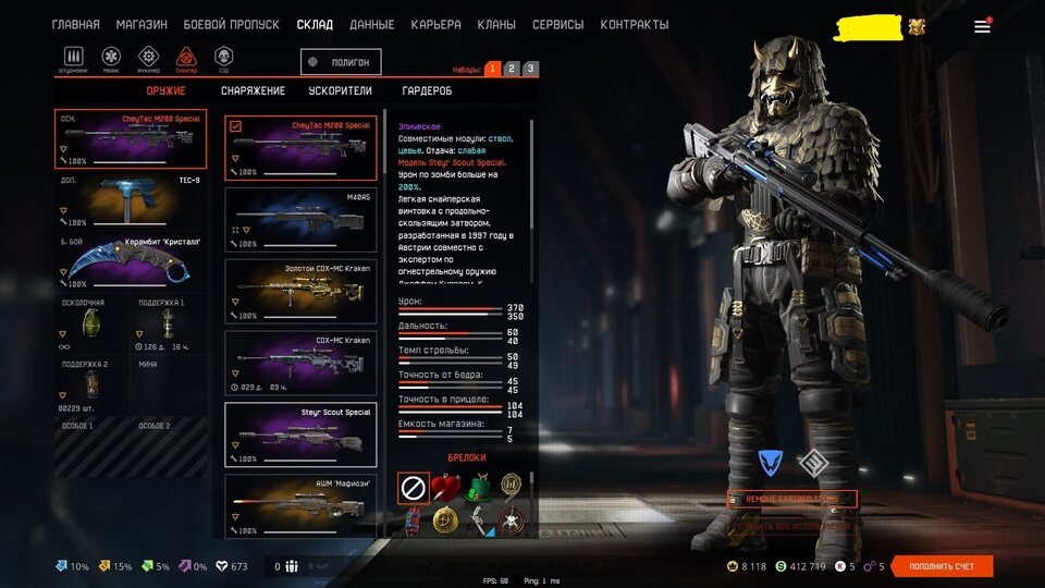 🔫Раритетное оружие: Золотой COX-MC Kraken, Золотой M16A3 Custom, Золотой ПКП "Печенег", TEC-9, AWM "Мафиози", Золотой АК-15 Custom, Золотой АК "Альфа";